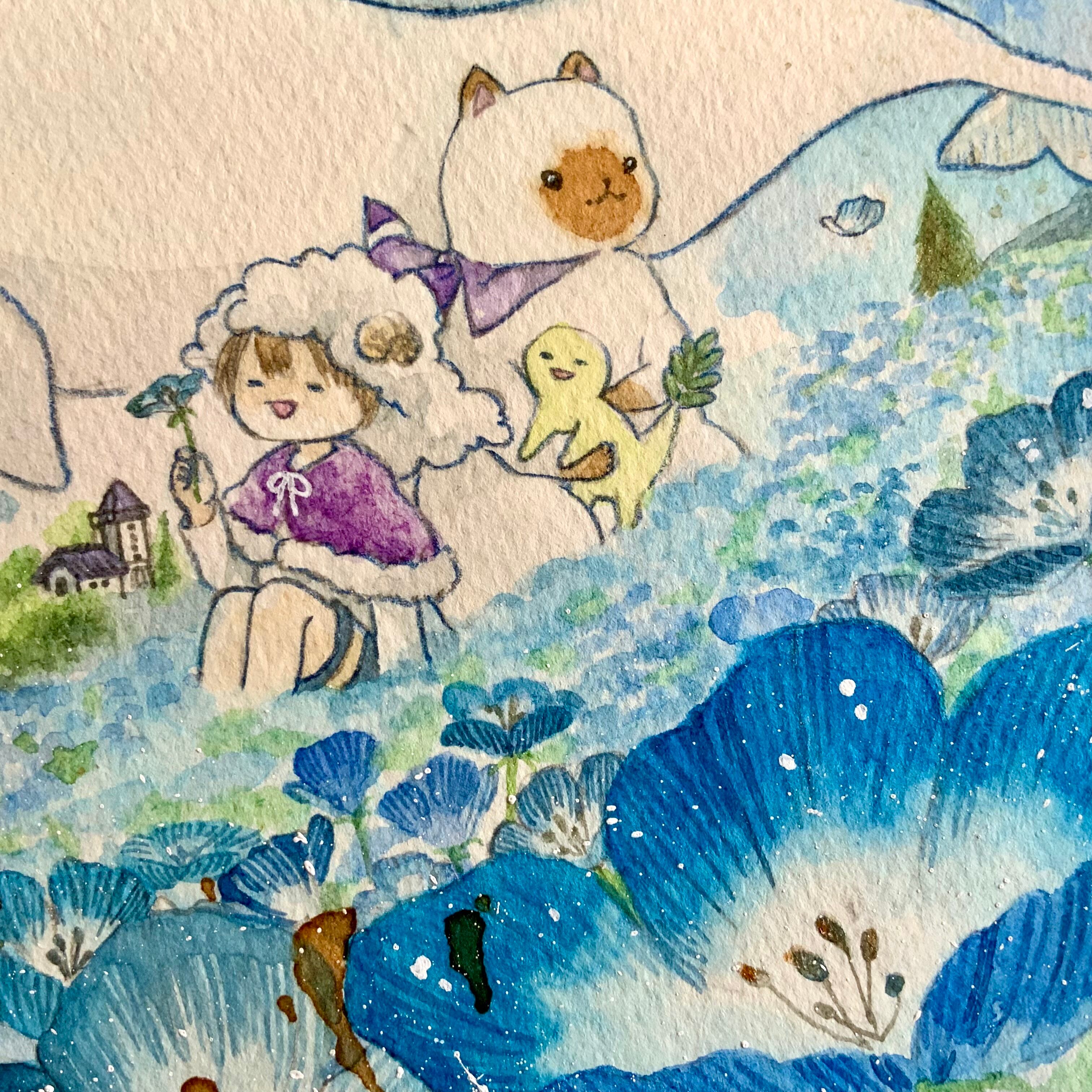 温かな色彩で描いたファンタジックなイラストアート。