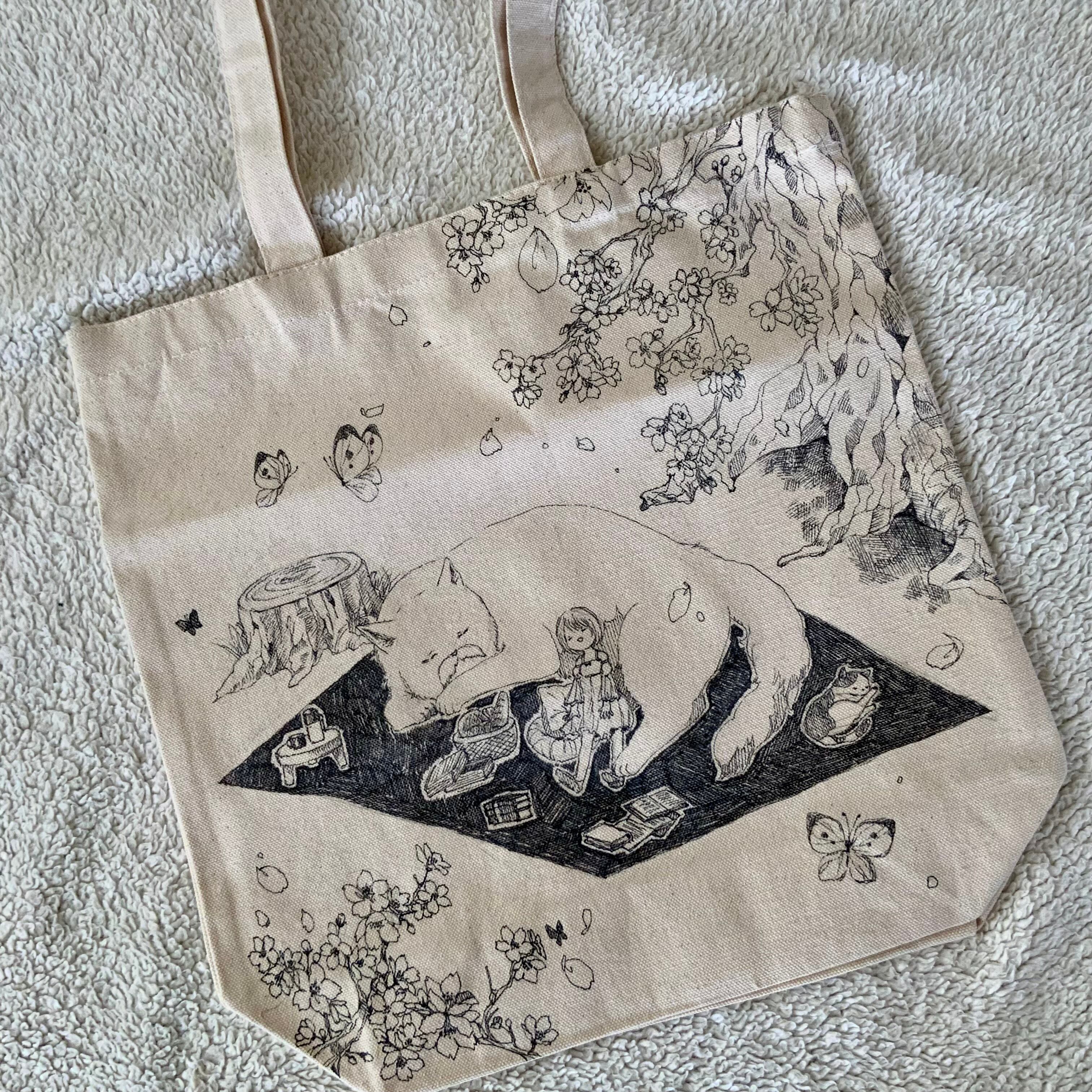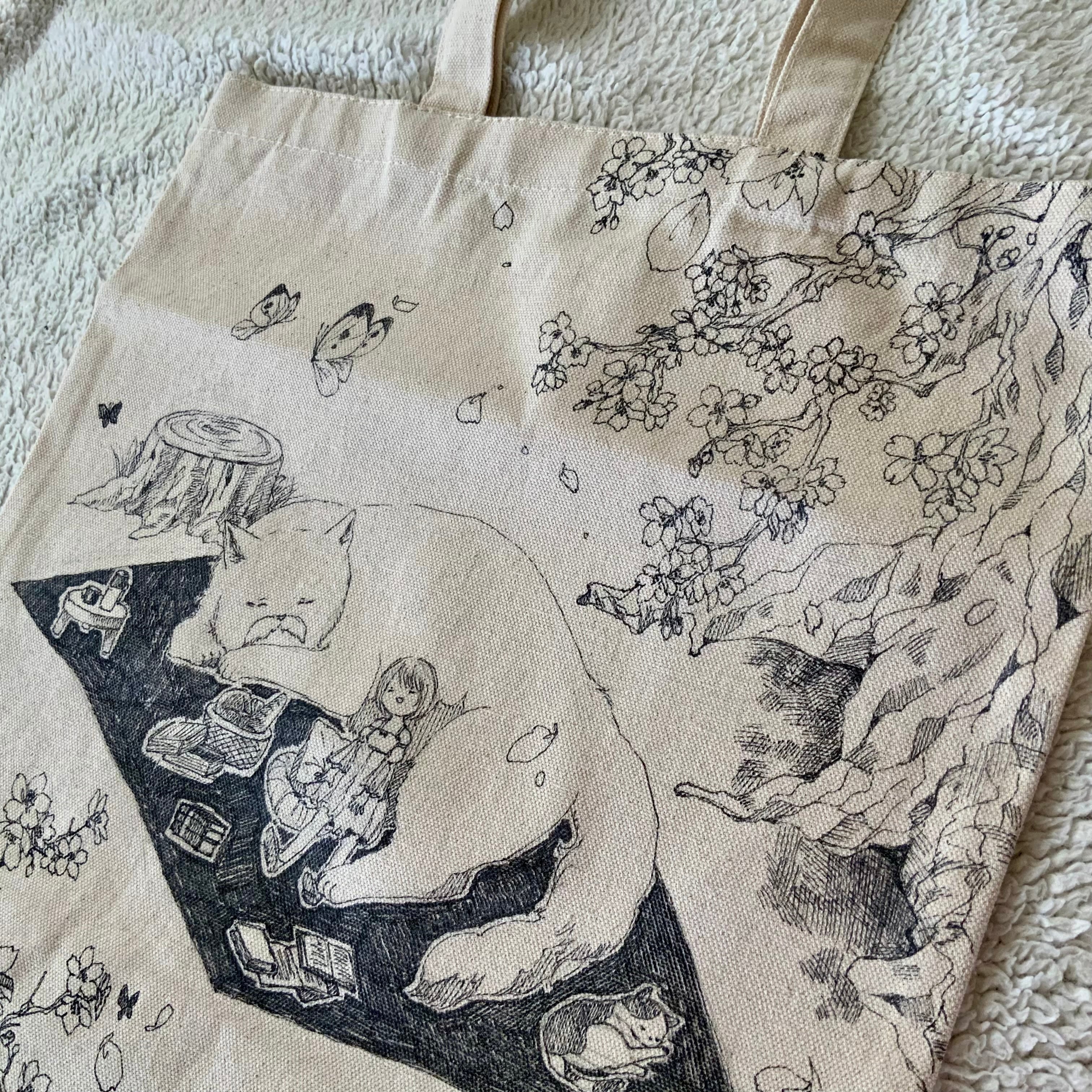 手描きトートバッグM 桜舞う庭先
