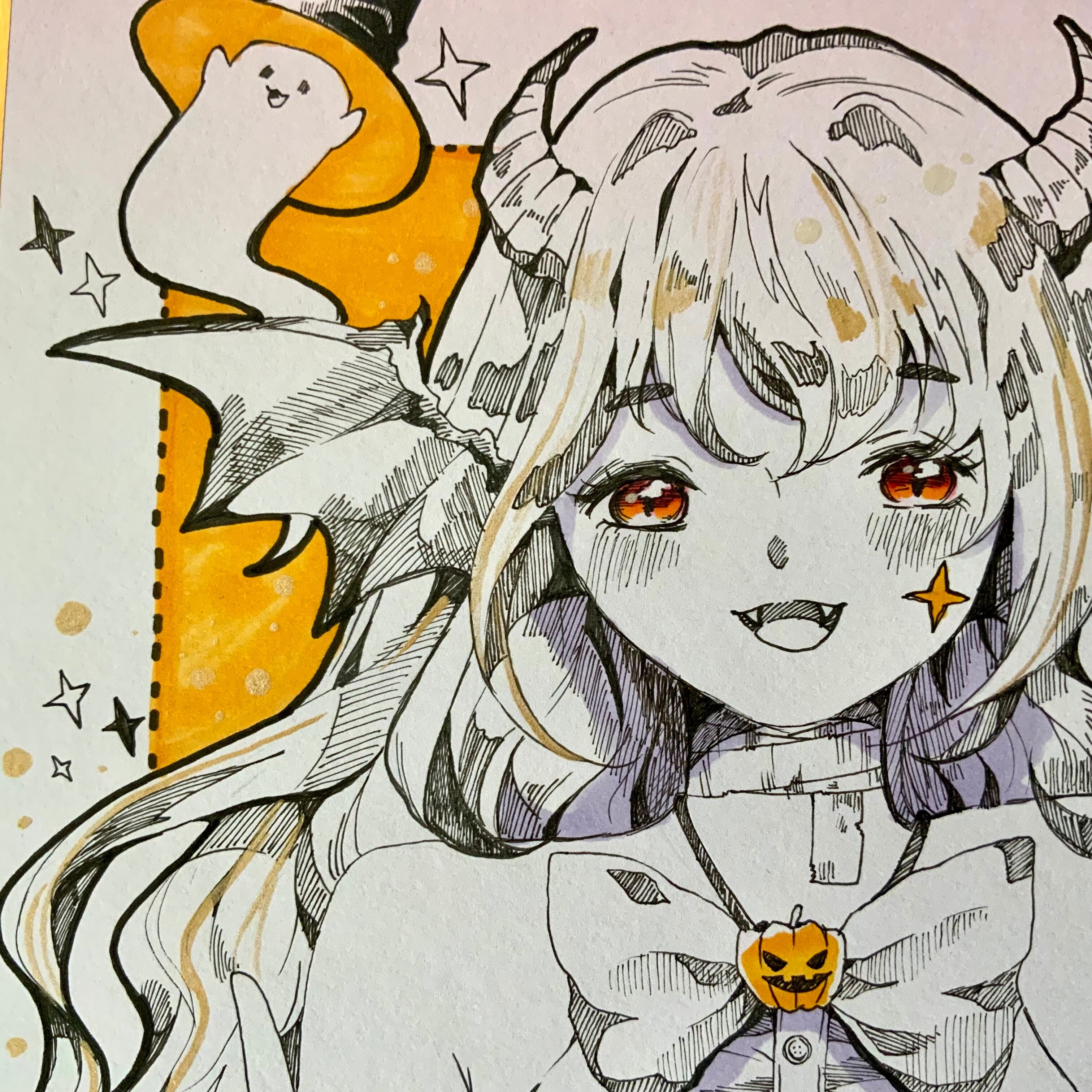 お化けや魔法使いの女の子をポップでキュートに描きました。